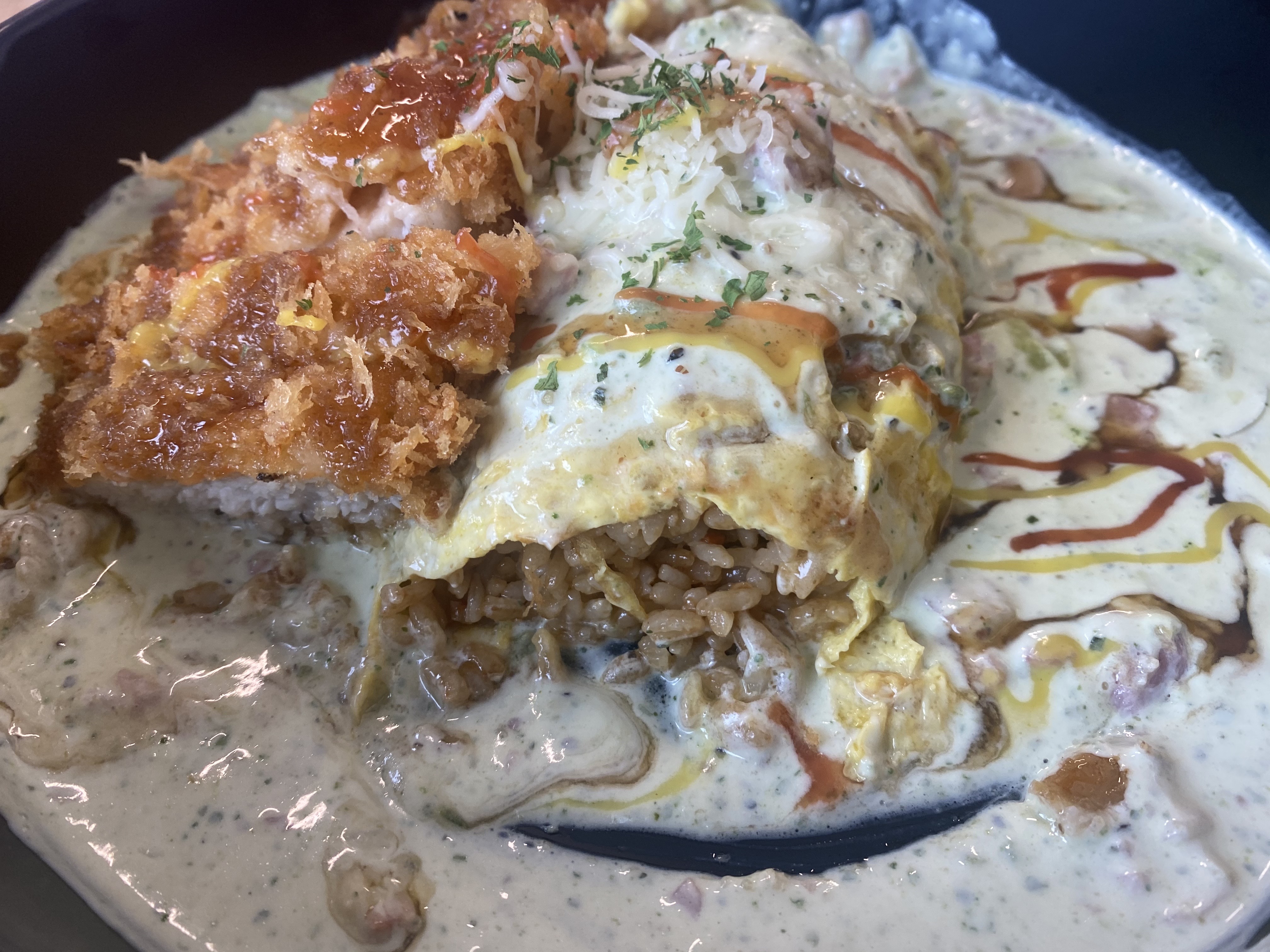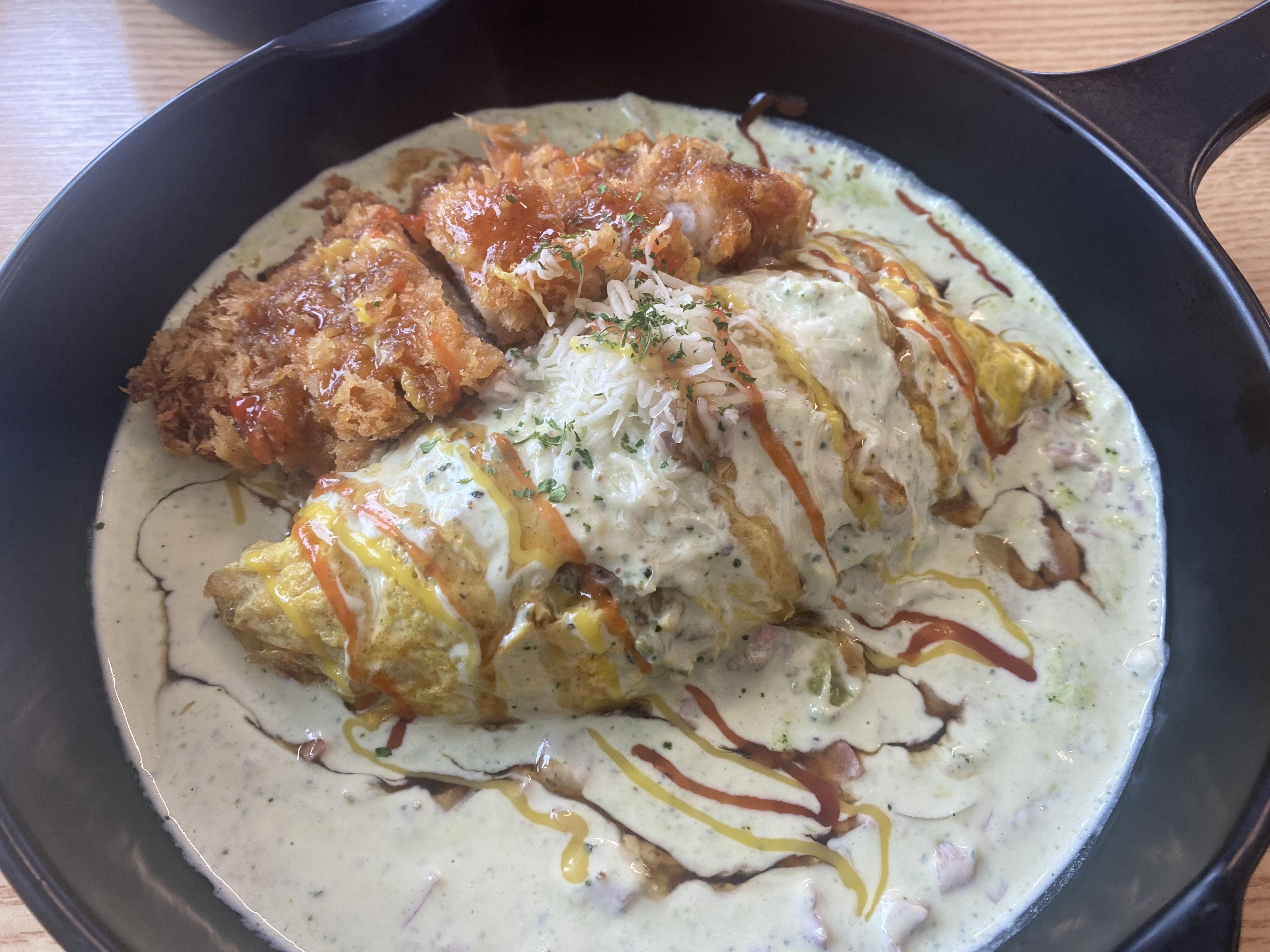 크림 오므라이스 + 돈까스토핑