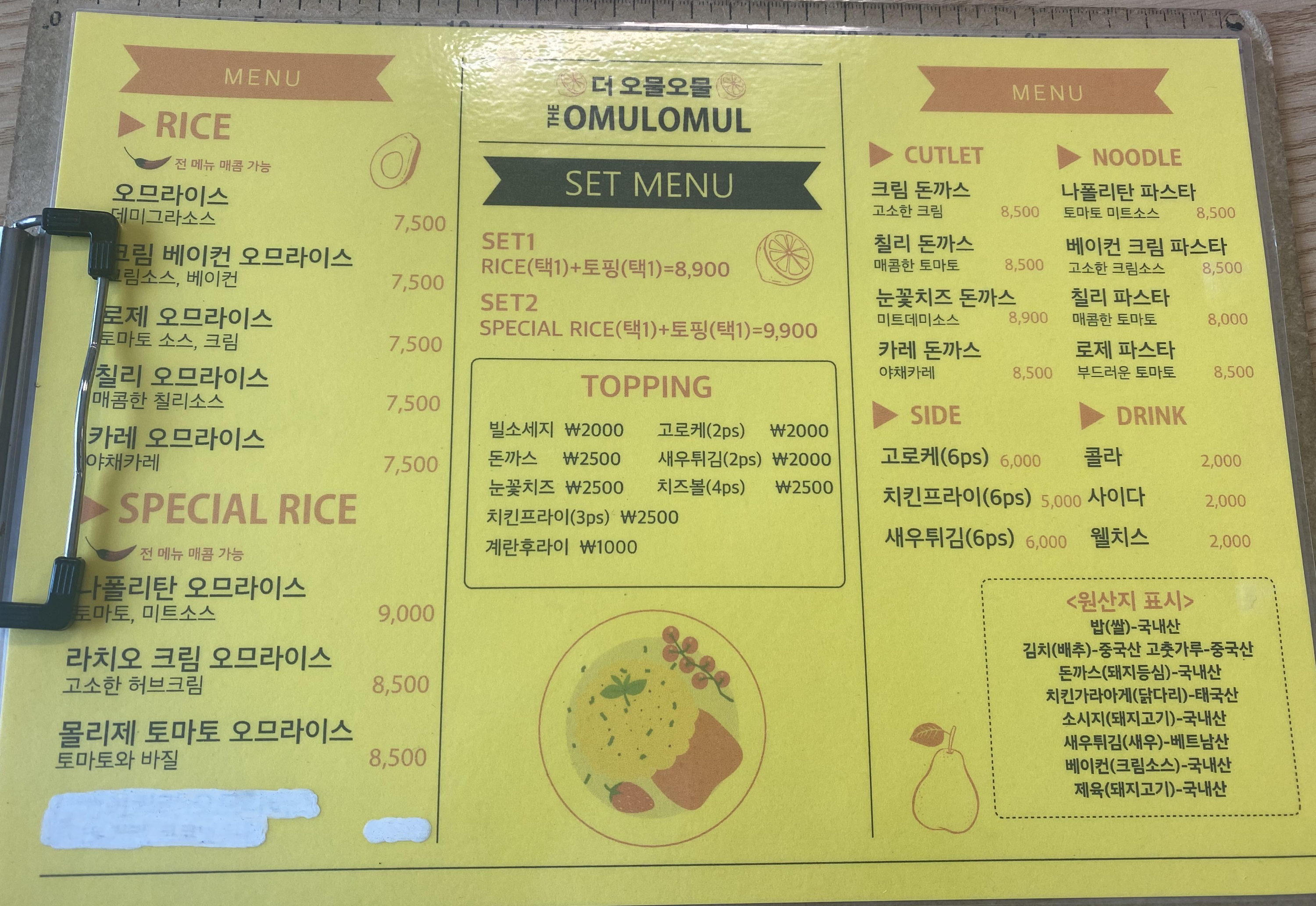 (지금은 오므라이스 가격들이 천원씩인상되었습니다! 토핑들도 인상되었네요)